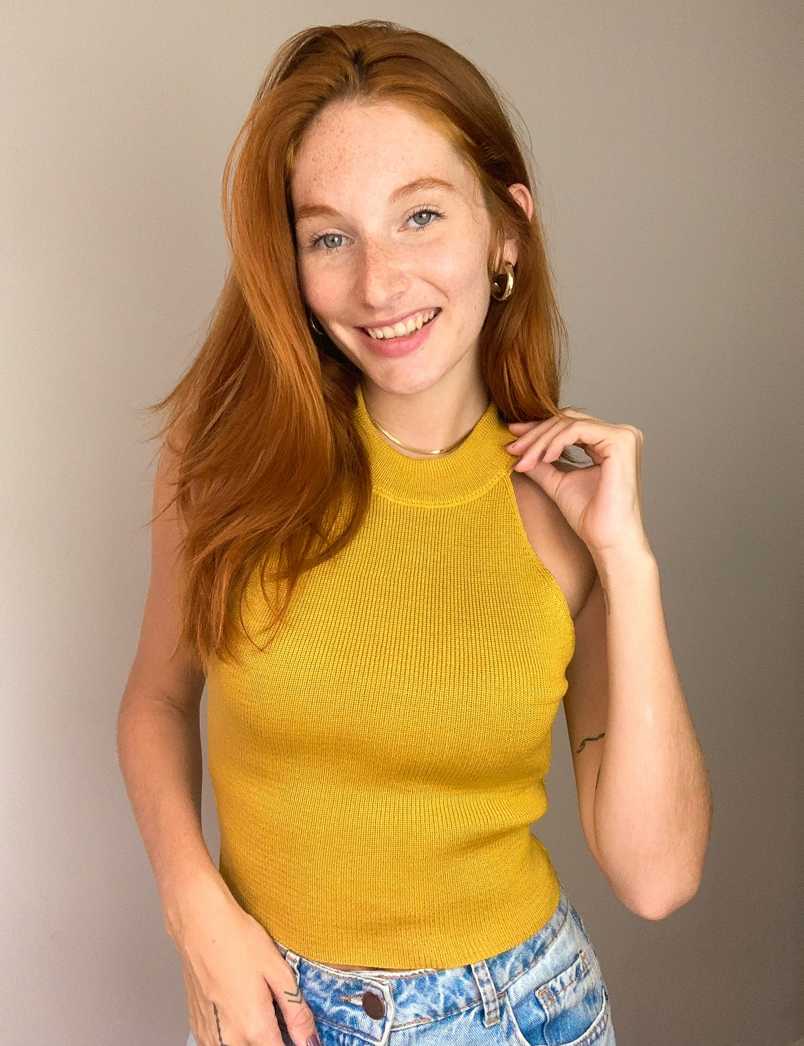 Modelagem ajustada, canelado bem fechado, textura caracteristica do trico, comprimento ideal, nem curto nem comprido.